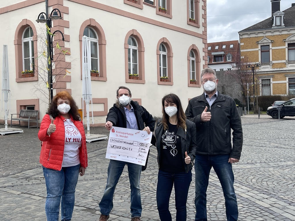 Sichtlich erfreut zeigten sich auch die Vertreter des Weissen Rings, Jürgen Felix Zeck, Landesvorsitzender Saarland und Franz Josef Biesel, Außenstellenleiter St. Wendel. „ Sie haben mit einem T-Shirt gegen Hass und Hetze im Netz ein wichtiges Zeichen in der Gesellschaft gesetzt. Die Spende kommt nun unverschuldet in Not geratenen Opfern von Straftaten zu Gute. „Ally hilft“ hilft damit dem Weißen Ring e.V. zu helfen. Für dieses doppelte soziale Engagement und der Verbundenheit mit der starken Gemeinschaft des Weissen Rings, danke ich allen Beteiligten sehr. Diesen Dank darf ich auch im Namen der Menschen aussprechen, denen wir durch diese Unterstützung helfen können“, so Zeck.