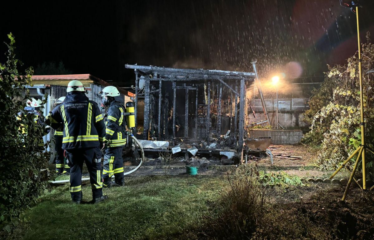 Ein Gartenhaus in Bosen, in der Bostalstraße, brannte am Samstagabend vollständig nieder. Vermutlich ausgelöst durch einen Blitzeinschlag, stand das Gebäude, in dem eine Sauna untergebracht war, beim Eintreffen der Feuerwehr bereits im Vollbrand. Dank des schnellen Einsatzes von zwei C-Rohren konnte ein Übergreifen der Flammen auf benachbarte Garten- und Gewächshäuser verhindert werden. Für die Nachlöscharbeiten mussten Teile der Wände und das Dach mit einer Rettungssäge geöffnet werden, um Glutnester in der Dämmung zu löschen. Verletzte gab es keine. Etwa 65 Einsatzkräfte mehrerer Löschbezirke waren rund drei Stunden vor Ort im Einsatz.