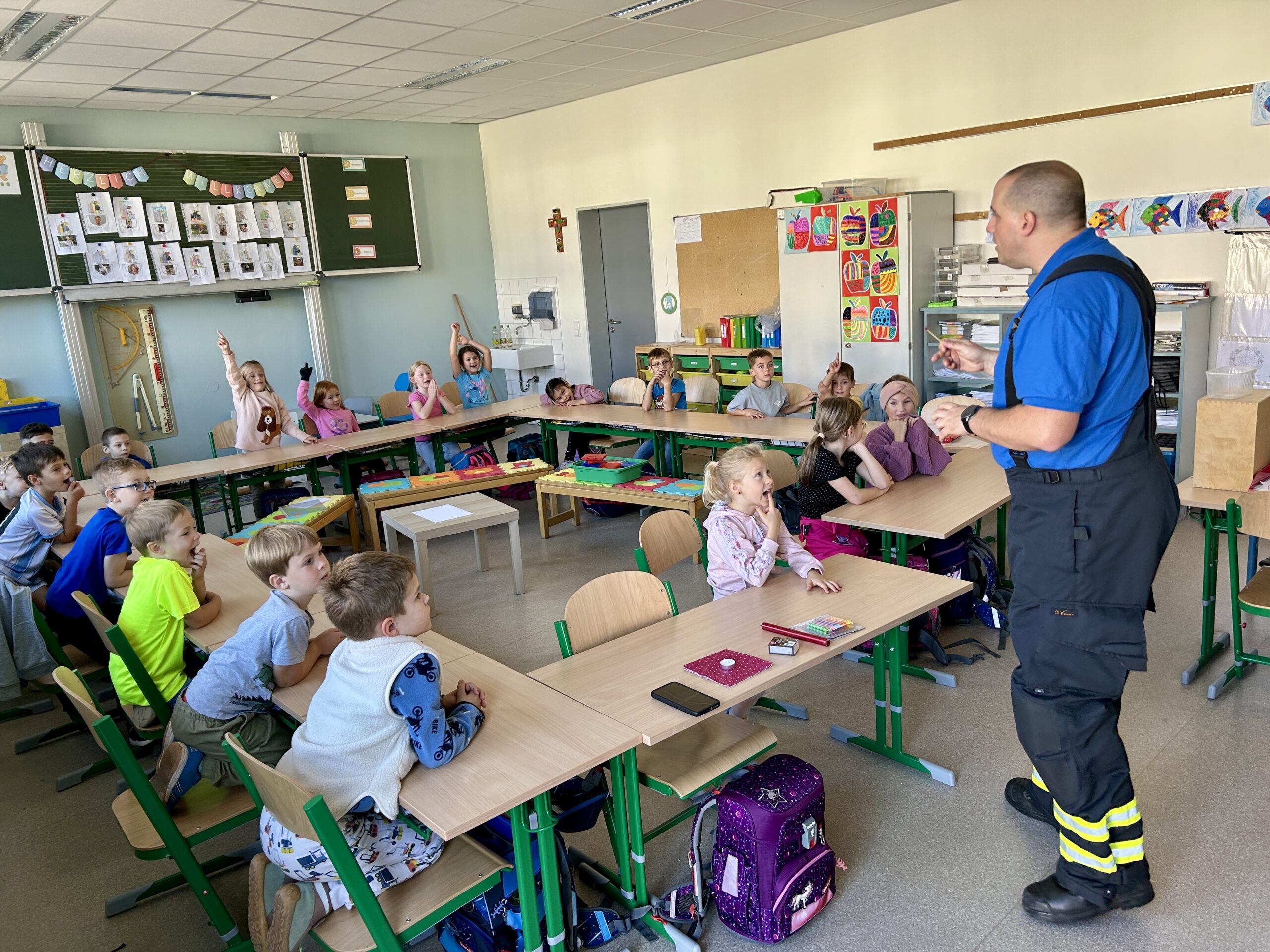 Bürgermeister Andreas Maldener unterstrich die Bedeutung der Aktion: „Die Brandschutzerziehung ist eine Investition in die Sicherheit unserer Kinder und unserer Gemeinschaft. Wenn wir schon frühzeitig über Brandrisiken informieren, ihnen einfache Verhaltensregeln vermitteln und sie im sicheren Umgang mit Feuer schulen, legen wir den Grundstein dafür, dass sie im Ernstfall ruhig, besonnen und verantwortungsvoll handeln. Prävention funktioniert am besten, wenn sie Nähe schafft – zwischen Schule, Feuerwehr und Familie. Deshalb unterstütze ich solche Initiativen mit ganzer Überzeugung und freue mich über jedes positive Zeichen, das zeigt, dass unsere Kinder sicherer und selbstbewusster werden. Mein Dank gilt allen Beteiligten – Lehrkräften, Feuerwehr, Eltern und den jungen Helfern vor Ort.“