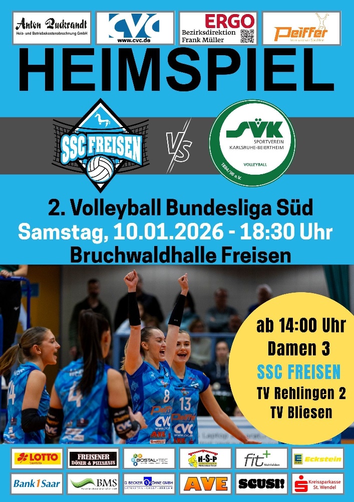 Das Team von Trainerin Leonie Dewes, das von Philipp Heß unterstützt wird, hat die bisherigen Erwartungen übertroffen und kann ohne Druck in beide Partien gehen. Im Anschluss an den Doppelspieltag folgt das Highlight des Tages: Die erste Damenmannschaft des SSC Freisen empfängt in der 2. Bundesliga den SV Karlsruhe-Beiertheim. Der Gegner aus Nordbaden belegt mit einem Punkt Vorsprung Rang sieben, hat allerdings bereits eine Partie mehr absolviert als die Gastgeberinnen.