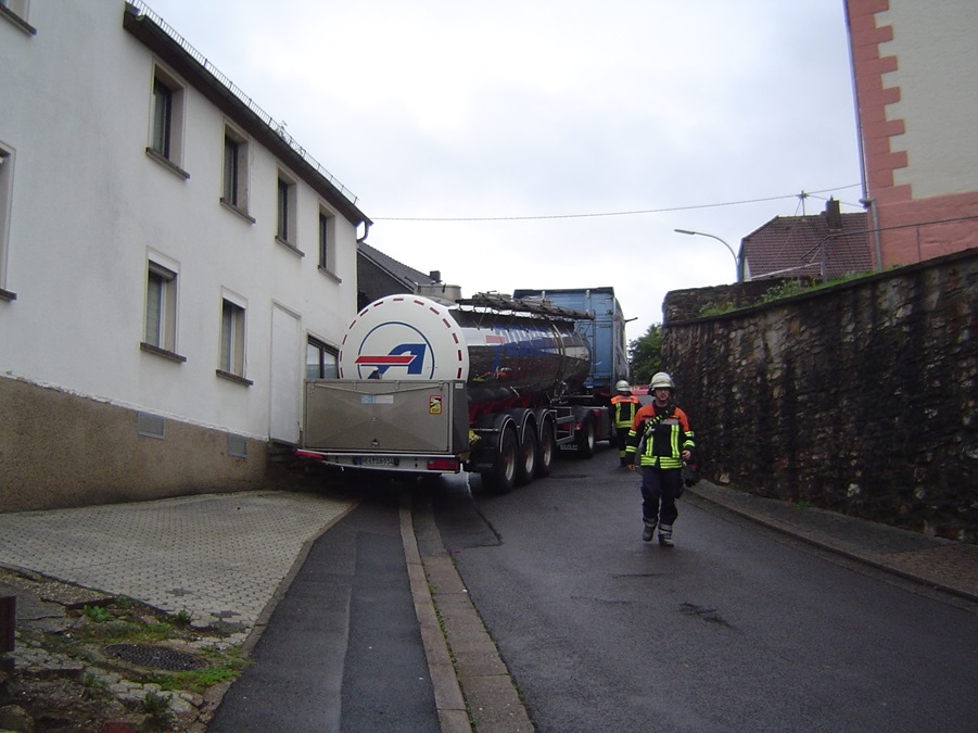 Ein Tanklastwagen aus Schleswig-Holstein sorgte am Donnerstagmorgen für einen Feuerwehreinsatz in Kastel. Das mit Harnstofflösung beladene Fahrzeug blieb gegen 8.35 Uhr in der steilen Dr.-Spang-Straße nahe der Kirche stecken.