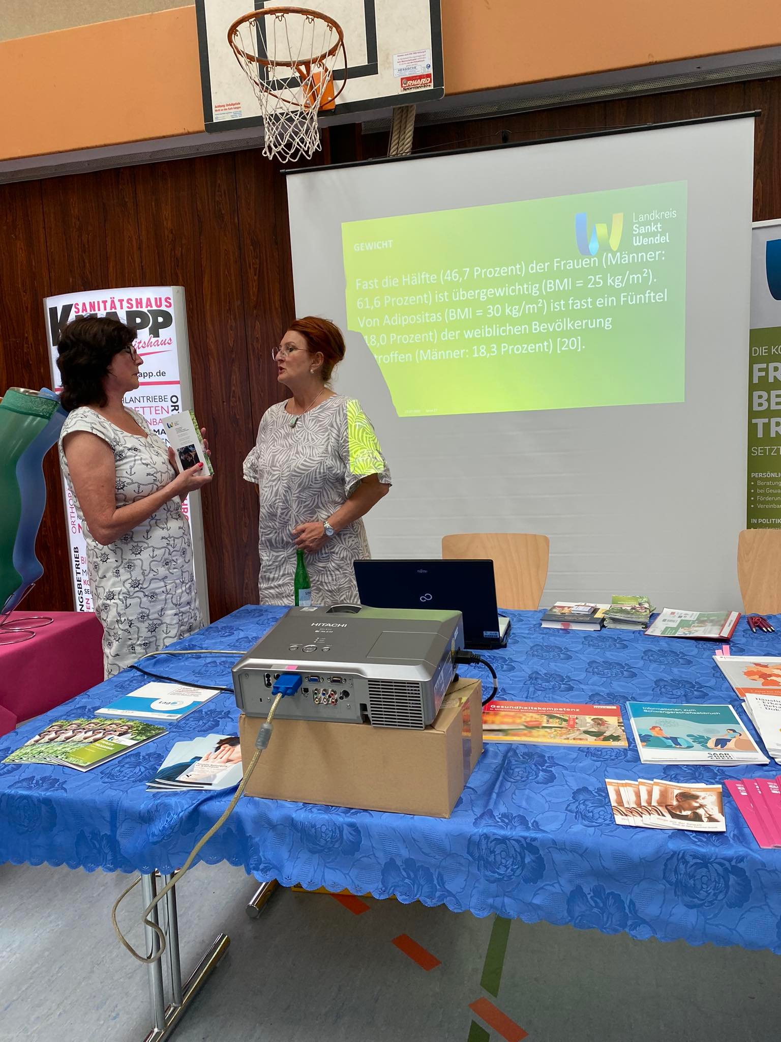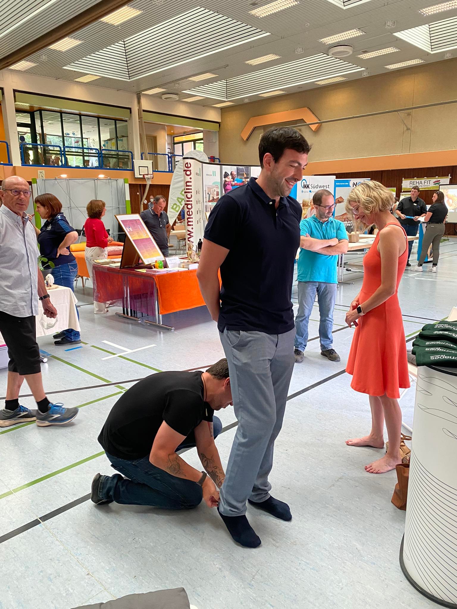 Letzte Woche war es wieder soweit. Rund 500 Menschen aus der Region besuchten über den Tag verteilt die Bliestalhalle und trafen dort auf zahlreiche Gesundheitsexpertinnen und -experten, die an über 30 Informationsständen bereitstanden, um zu Gesundheitsthemen zu beraten und zu verschiedenen Tests, wie Muskelkraft-, Blutdruck-, Blutzuckermessungen, Laufschuh- oder Gesundheitsanalyse einzuladen. Für die Jüngeren Besucher*innen wie die Dritt- und Viertklässler*innen der Grund- und Förderschule in Oberthal gab es Informationsangebote zu den Themen Medien und Alkoholprävention sowie einem Bewegungsangebot, bei dem die psychomotorischen Fähigkeiten gefragt waren.