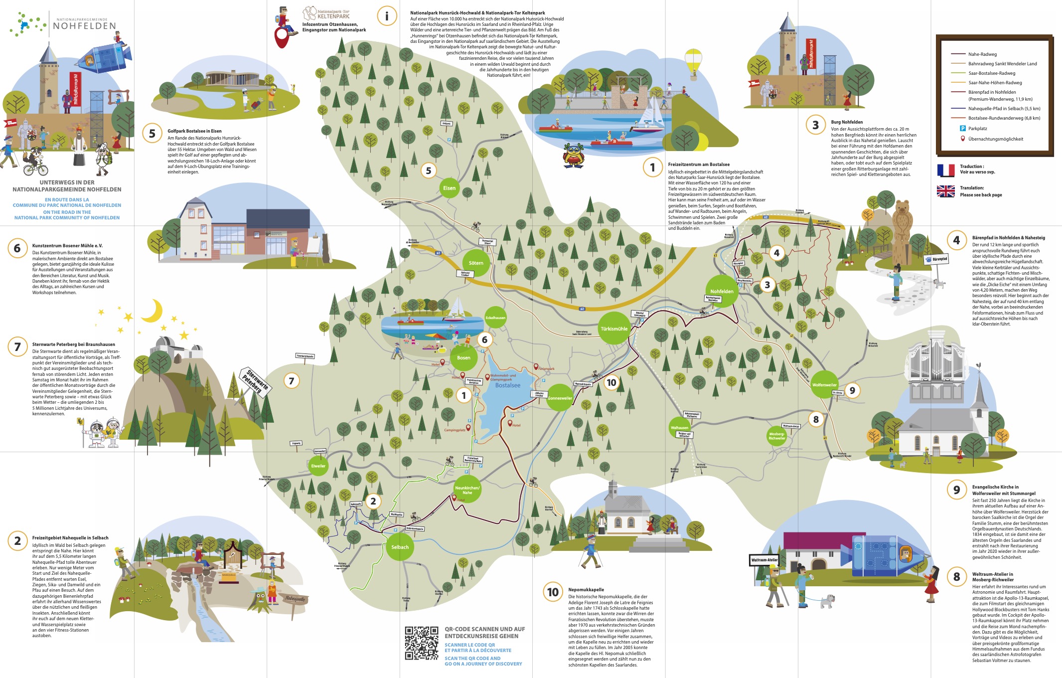 Die Gemeinde Nohfelden geht bei der touristischen Information neue Wege. Ein frisch entwickelter Faltplan kombiniert die klassische Papierform mit digitaler Technologie. Besucher können per QR-Code auf einen interaktiven 3D-Showroom zugreifen.