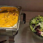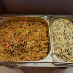 Leckeres ASIA-Putengeschnetzeltes nach eigenem Haus-Rezept von CATERER ARNDT SOMMER mit schmackhaften Dim-Sum-Nudeln und feinem Basmati-Reis, sowie gemischtem Salat.