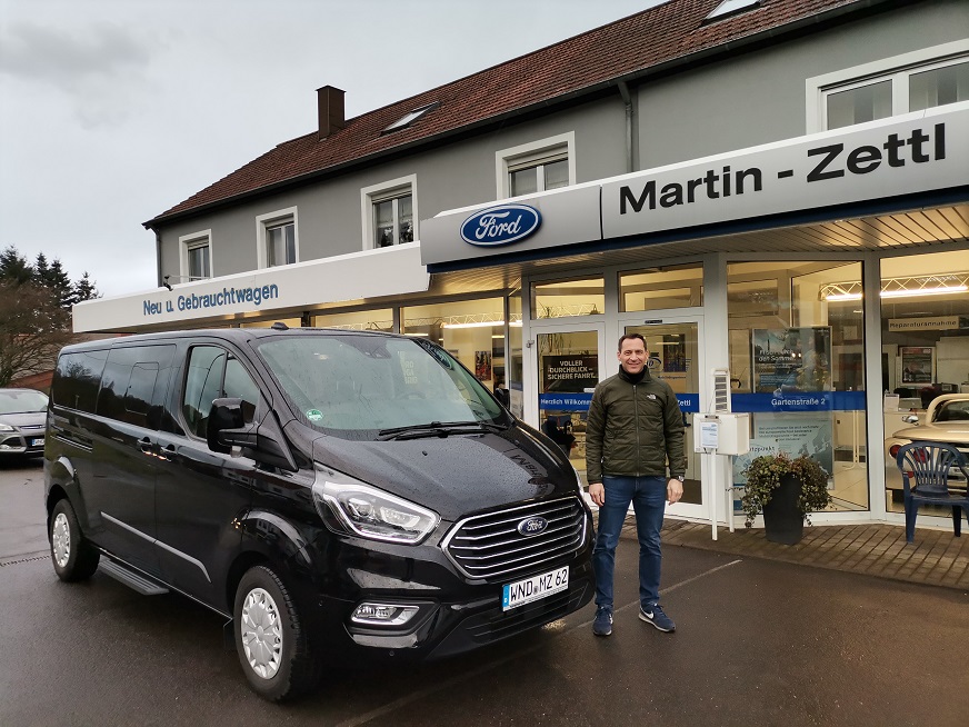 Inhaber Jochen Martin übergibt am Donnerstag 11.036.2021 kostenlos-leihweise einen fast neuen FORD TRANSIT an Michaela Roos (Gudd-Zweck UG), damit dieser noch am gleichen Tag bei der sog. Gudd-Zweck-Brillenverwertungsstelle-Oberkirchen bzw. an der der sog. EDA-Optiker-Ausbildungswerkstatt mit Brillen aus dem Lagerbestand der sog. WIAF-Brillenverwertungsstelle in St. Wendel und mit 2 großen Masken-Kartons beladen werden kann.