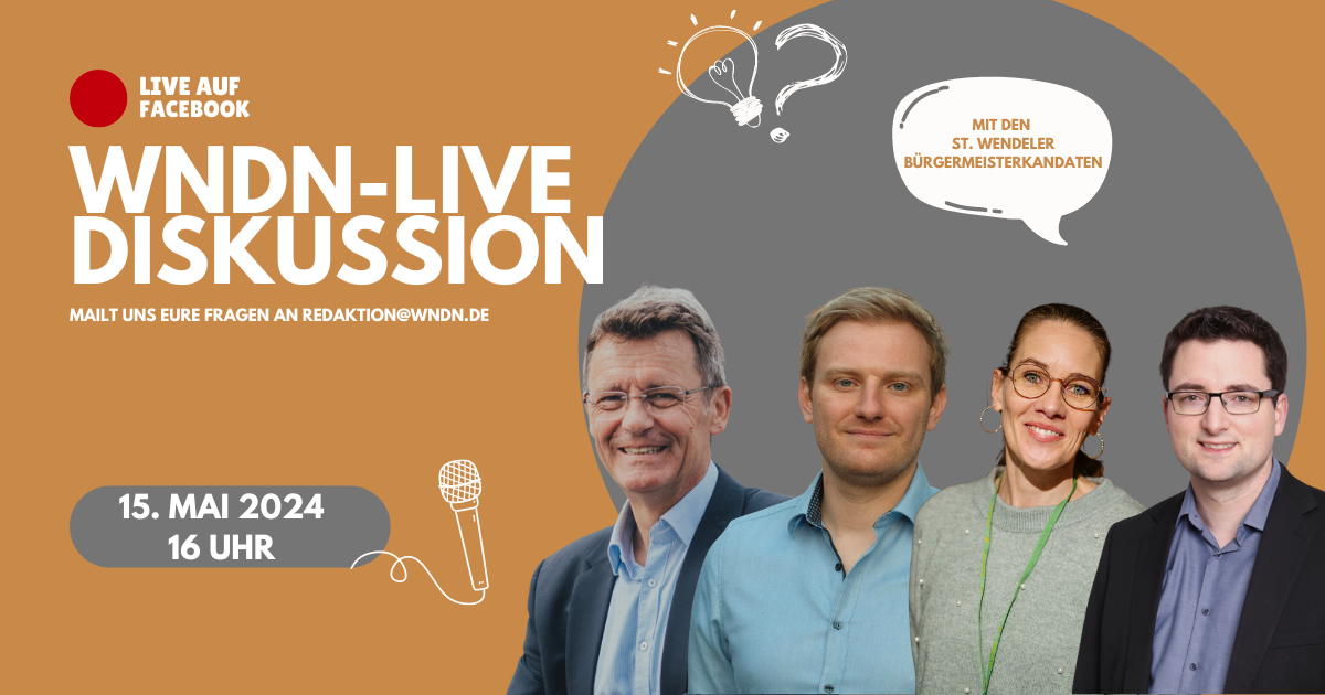 Am Mittwoch dürfen wir Peter Klär, Marc André Müller, Uta Sullenberger und Tobias Decker in unserer Redaktion begrüßen. Die St. Wendeler Bürgermeisterkandidaten werden uns im Facebook-Livestream Rede und Antwort stehen.