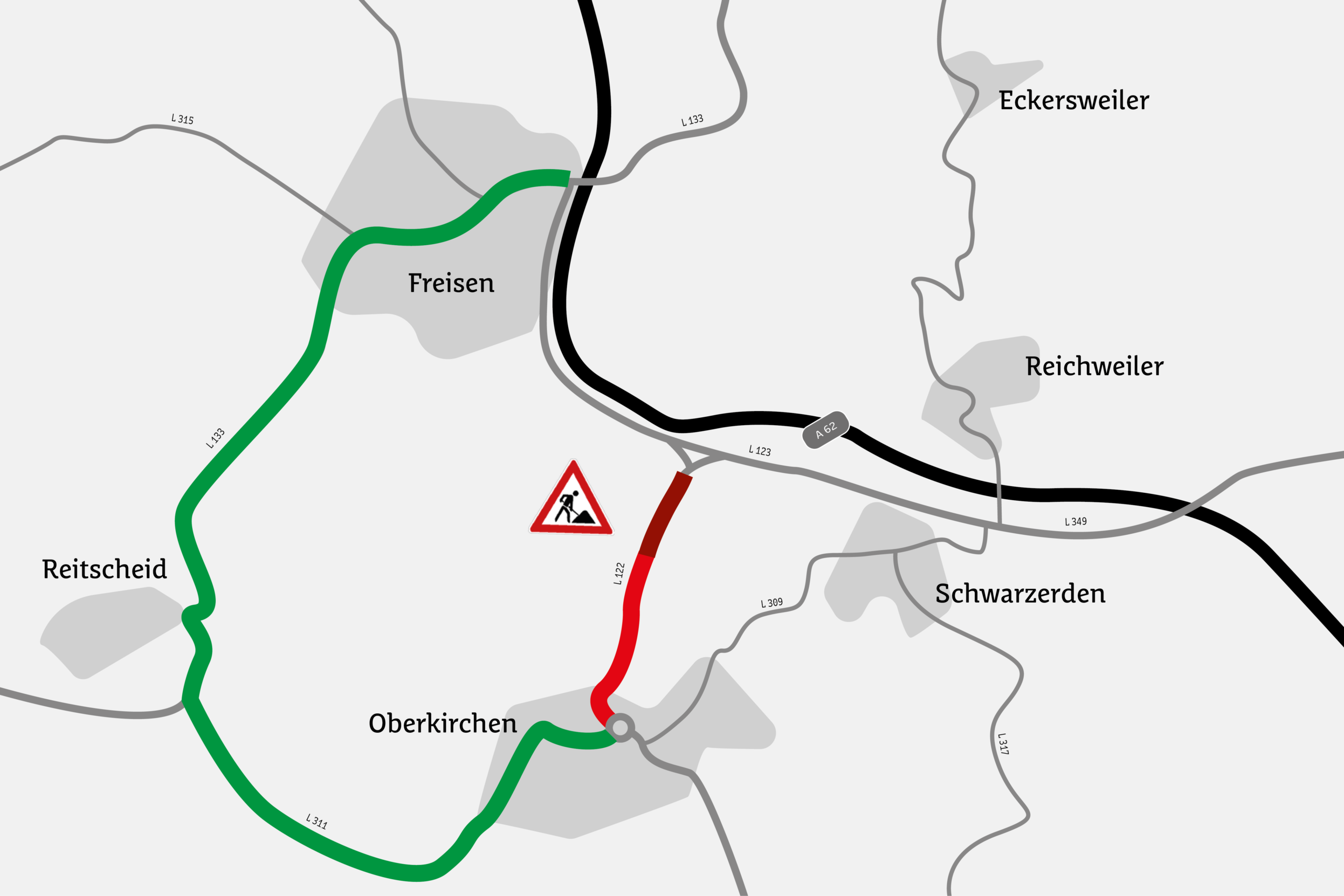 Da die Sanierung nur unter Vollsperrung möglich ist, müssen Verkehrsteilnehmer erhebliche Umwege in Kauf nehmen. Die offizielle Umleitung führt von der L 122 über die L 123 nach Freisen, dann über die L 133 nach Reitscheid und schließlich über die L 311 zurück nach Oberkirchen. Diese Route gilt für beide Fahrtrichtungen.