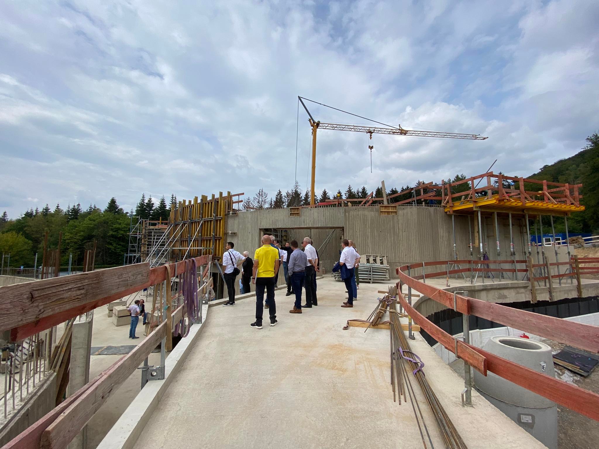 Viele Mitstreiter, Unterstützer und Verantwortliche sind persönlich zu dem Termin gekommen, um sich ebenfalls über die Entwicklung der Baumaßnahmen oder „unseres Babys“, wie der Bürgermeister das Projekt nannte, zu informieren. Dieses Kind habe mehrere Väter und Mütter und „mit vier Jahren eine ungewöhnlich lange Schwangerschaft“, scherzte er über die Dauer der Baumaßnahme in Bezug auf die Metapher. Zu den „Eltern“ gehören unter anderem das Umweltministerium, als Vertreter des Landes im Zweckverband, der Landkreis St. Wendel, die Gemeinde Nonnweiler und das Wirtschaftsministerium.