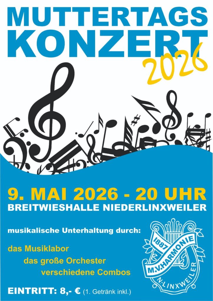 Am Samstag, den 09. Mai um 20.00 Uhr, lädt der Musikverein Niederlinxweiler zu seinem Muttertagskonzert in die Breitwieshalle Niederlinxweiler ein. Ein abwechslungsreiches Programm soll geboten werden.