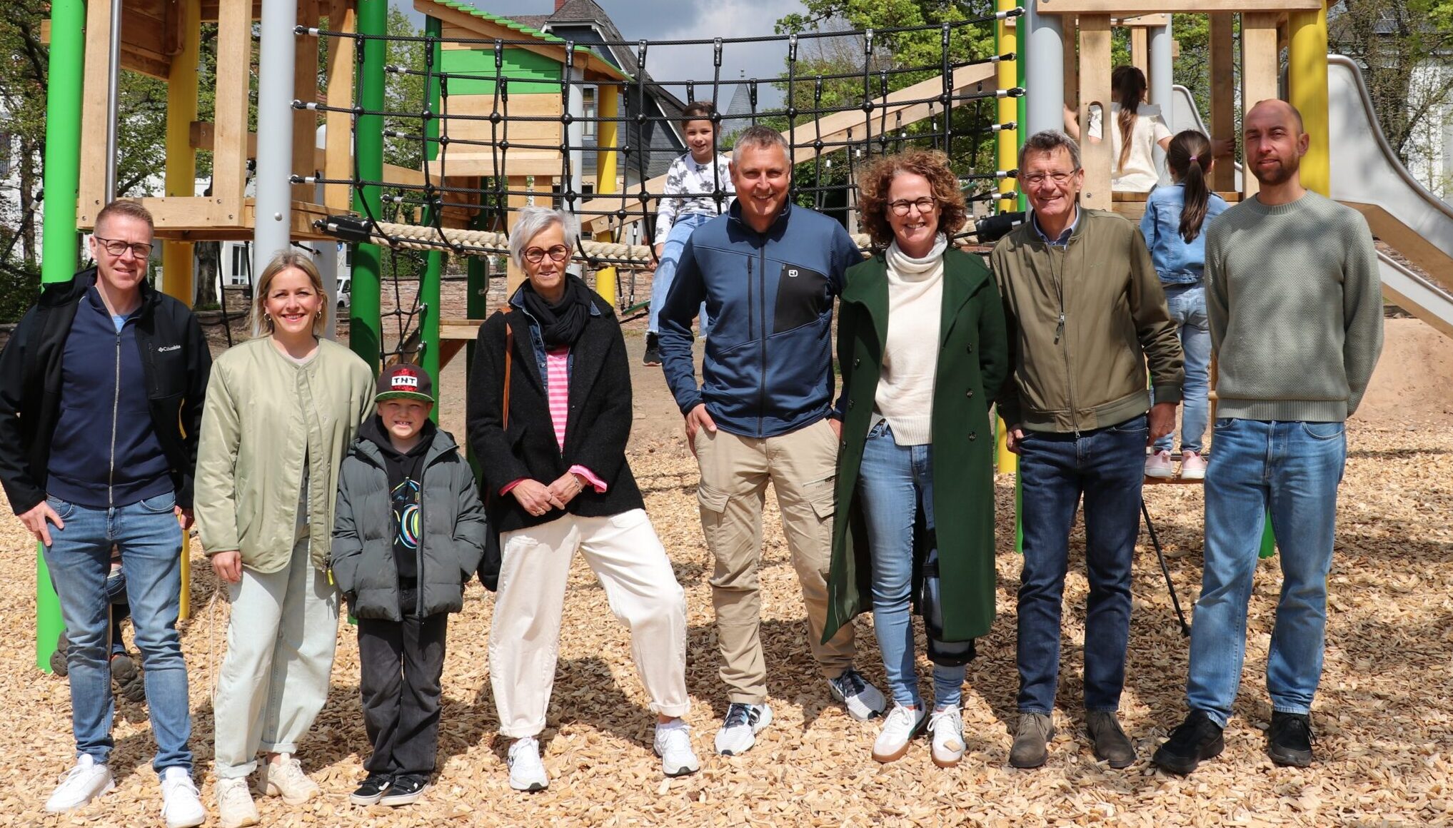 Bürgermeister Peter Klär gab die neuen Spielgeräte gemeinsam mit Vertreterinnen und Vertretern der Stadt sowie der Schulleitung und den Grundschulkindern offiziell frei.