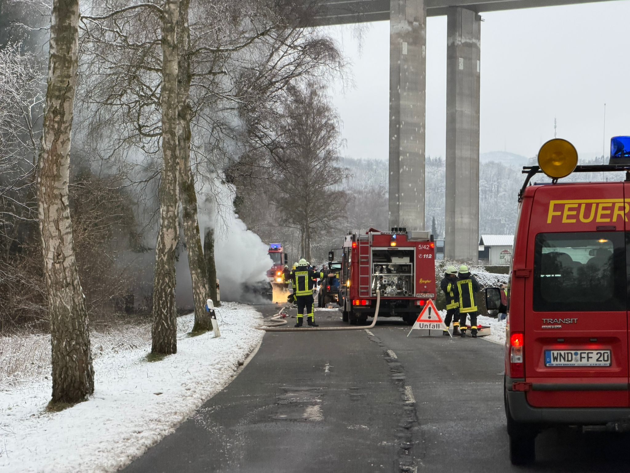 Die Landstraße wurde für die Dauer der Bergungs- und Ermittlungsarbeiten voll gesperrt. Auch am Sonntag, 12. Januar, blieben Teilbereiche aus Sicherheitsgründen gesperrt.