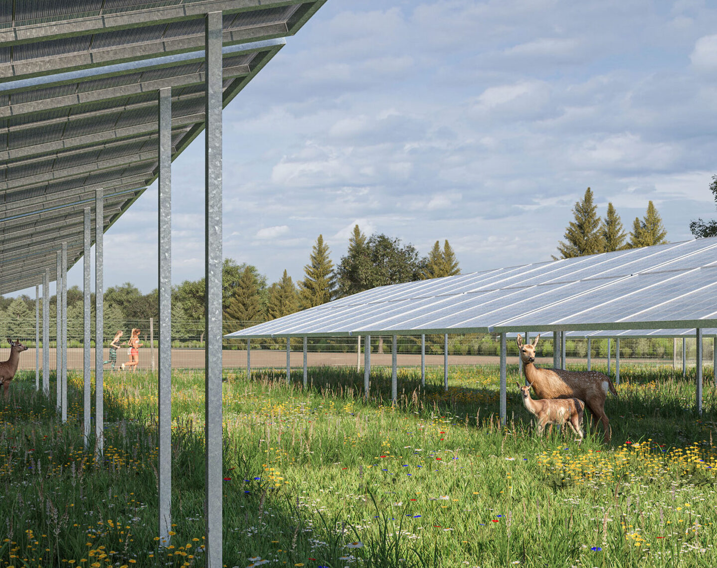 Die Anlage mit einer Leistung von 8,3 Megawatt entsteht auf einem Teil der 24 Hektar großen Gatterflächen des biologisch wirtschaftenden Familienbetriebs. Dabei werden 13.000 Solarmodule auf erhöhten Gestellen montiert, sodass die etwa 150 Tiere des Hofes weiterhin unter und zwischen den Modulen grasen können.