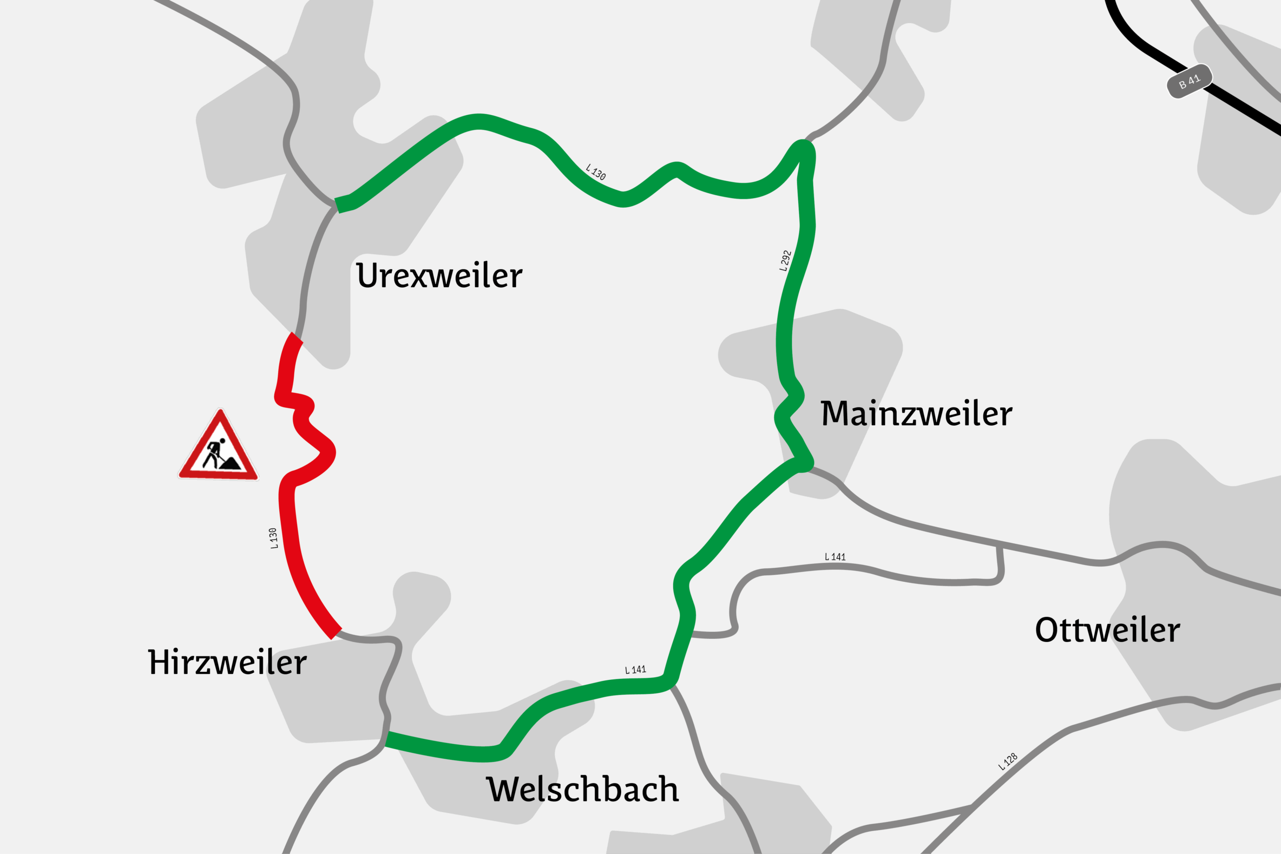 Die Landesstraße 130 zwischen Hirzweiler und Urexweiler wird für eine Woche komplett gesperrt. Vom 17. bis 21. November 2025 führt der Landesbetrieb für Straßenbau notwendige