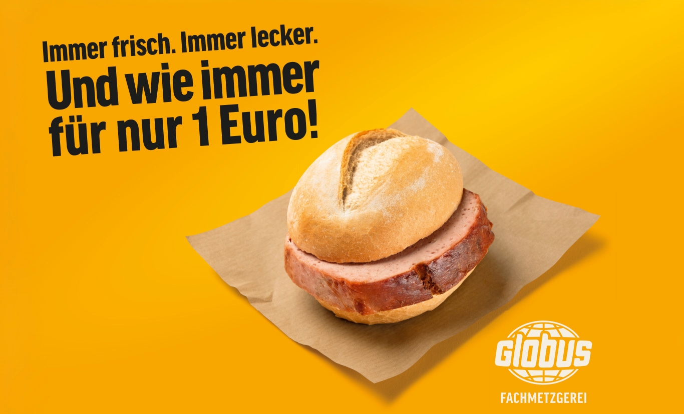 Die Handelskette Globus wird ihren bekannten Fleischkäsweck auch im kommenden Jahr für einen Euro verkaufen. Obwohl die Ausgaben für Energie, Rohstoffe und den laufenden Betrieb
