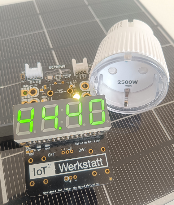 Denn in fast jedem Haushalt gibt es heute intelligente, d.h. schaltbare Steckdosen, die einen elektrischen Verbraucher bequem vom Sofa aus steuern lassen (Smart-Home). Hier setzt die IoT2-Werkstatt an: Ein einfacher Algorithmus verknüpft die Informationen über das aktuelle Angebot mit der Steuerung der Steckdosen. Das Ganze funktioniert praktisch wie in einem Kochrezept: